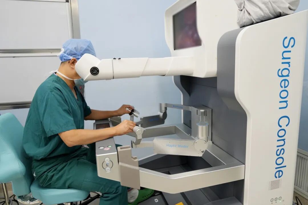 10月13日,在麻醉科、手術室等多學科團隊的緊密配合下,小兒外科楊坤主任帶領手術團隊正式開展手術。手術僅在患兒臍部作一個2厘米的微小切口,將機器人機械臂伸入腹腔。在楊坤主任的精準操控下,靈活的機械臂在腹腔內(nèi)完成分離、切除狹窄部位、精準吻合等一系列復雜操作。整個手術過程幾乎零出血,充分彰顯了機器人手術的微創(chuàng)優(yōu)勢。