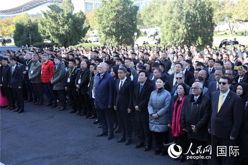 應(yīng)朝方邀請(qǐng),中國(guó)駐朝鮮使館外交官和駐朝外交使團(tuán)一道參加開(kāi)幕式。人民網(wǎng)記者 劉融攝