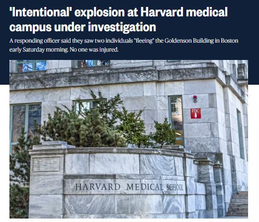 中新網(wǎng)11月2日電 據(jù)美國廣播公司(ABC)、美國全國廣播公司(NBC)報道,當(dāng)?shù)貢r間11月1日凌晨,美國哈佛醫(yī)學(xué)院一棟建筑發(fā)生爆炸。目前暫無人員傷亡報告。