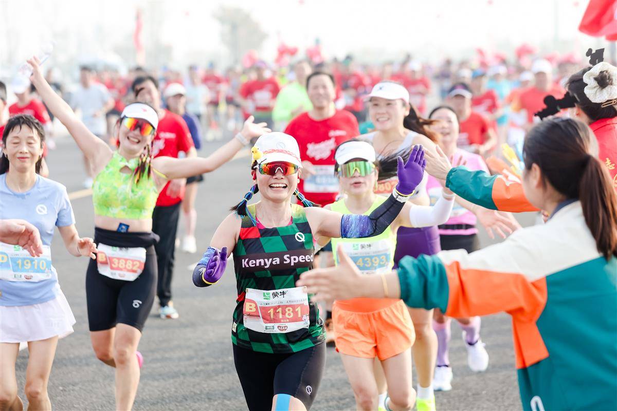 蒙牛2025孝感馬拉松選手沖過終點線。(孝感馬拉松組委會供圖)
