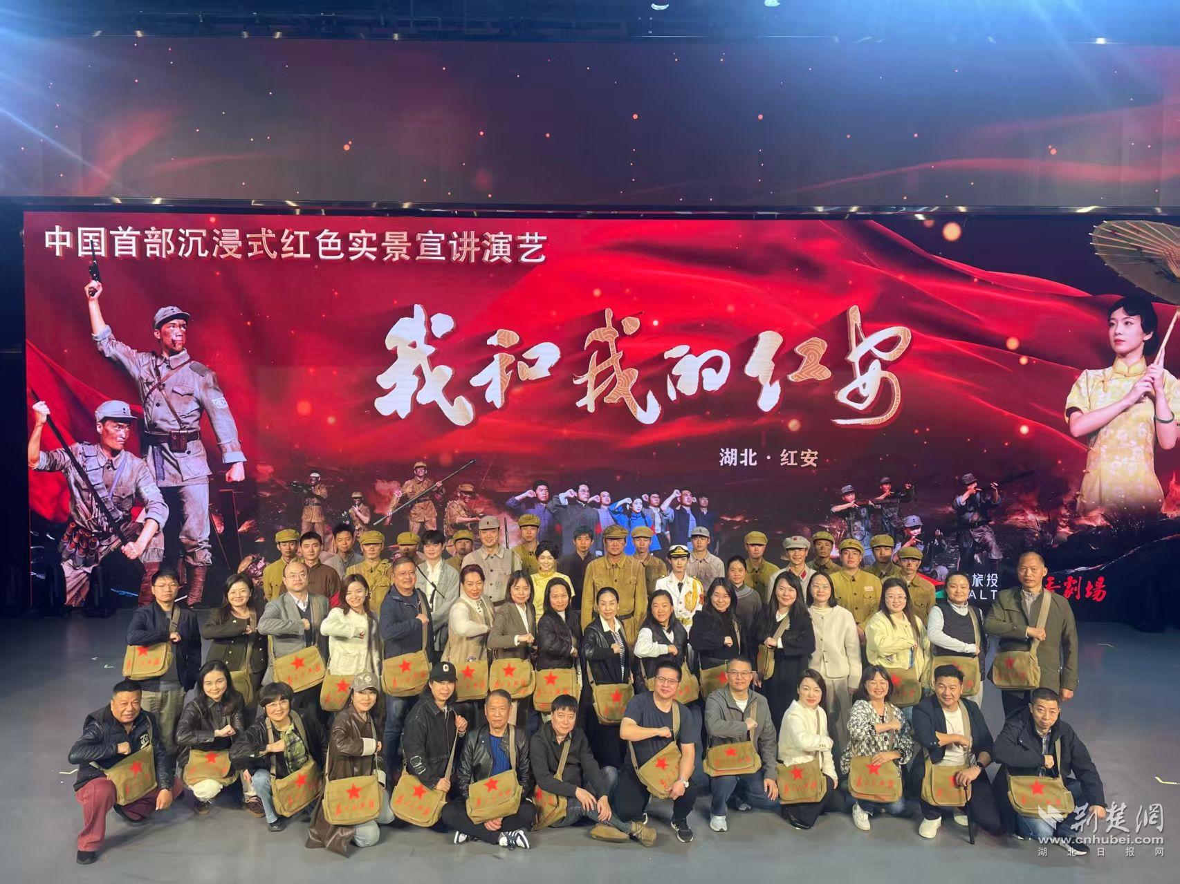 夜幕降臨,紅秀劇場燈光亮起,沉浸式紅色實景演藝《我和我的紅安》以聲光電融合的形式再現(xiàn)革命歷史。隨著劇情推進,崢嶸歲月的畫面一幕幕重現(xiàn),學(xué)員們在震撼與感動中感悟理想信念的力量。