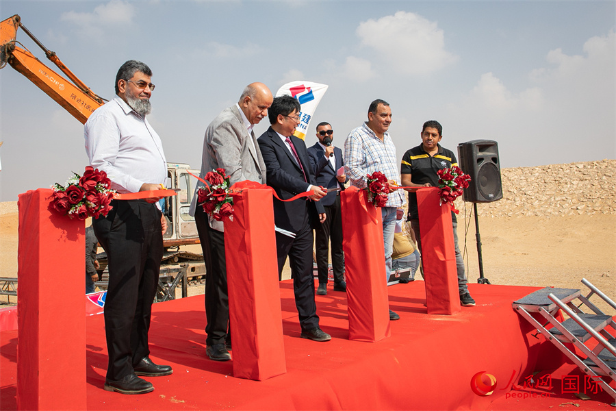 出席開(kāi)工儀式的埃方嘉賓易卜拉欣·謝哈塔(中)致辭。人民網(wǎng)記者 薛丹攝