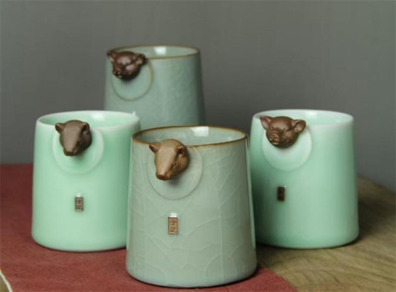 此次亮相的龍泉青瓷作品圍繞精致生活主題,展現(xiàn)了青瓷在日用瓷方面的創(chuàng)新。如浙江省工藝美術(shù)大師黃順民的《十二生肖水杯》巧妙融入生肖元素,杯身青釉溫潤,開片紋理古意盎然,杯口的生肖頭部雕刻生動細(xì)膩,實(shí)現(xiàn)傳統(tǒng)中國文化與龍泉青瓷工藝的完美融合;中國工藝美術(shù)大師、中國陶瓷藝術(shù)大師盧偉孫的《線性思緒手握杯》杯型直身微敞,杯身內(nèi)側(cè)與上唇露出白瓷胎,手工雕琢的線性紋理在涂抹青釉后,與光影交織出簡潔唯美的“哲思者”輪廓,1300℃還原焰燒制的青釉擅長表達(dá)青玉般潤澤的東方質(zhì)感,青白層次對比盡顯中國瓷器當(dāng)代頂級美學(xué)。另一款《星空龜紋手握杯》則以遠(yuǎn)古龜甲紋為符號,予以美好生活的祈福寓意,杯體配天然木紋底座,盡顯內(nèi)斂沉穩(wěn)的大家風(fēng)范,將中華文化底蘊(yùn)與當(dāng)代設(shè)計(jì)審美巧妙融合。