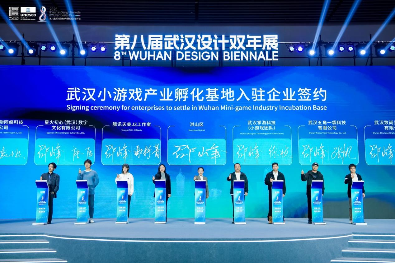榮譽(yù)之外,產(chǎn)業(yè)合作是設(shè)計(jì)價(jià)值轉(zhuǎn)化的關(guān)鍵。開幕式現(xiàn)場(chǎng),8家企業(yè)簽約入駐全國首家小游戲產(chǎn)業(yè)孵化基地——“武漢市小游戲產(chǎn)業(yè)孵化基地”,他們中既有充滿朝氣的新生代小游戲團(tuán)隊(duì),也有掌游科技這樣的行業(yè)領(lǐng)軍者,更有騰訊天美J3工作室等頂尖力量,他們將攜手打破行業(yè)邊界、共享資源平臺(tái),共同推動(dòng)數(shù)字創(chuàng)意產(chǎn)業(yè)與設(shè)計(jì)融合發(fā)展。
