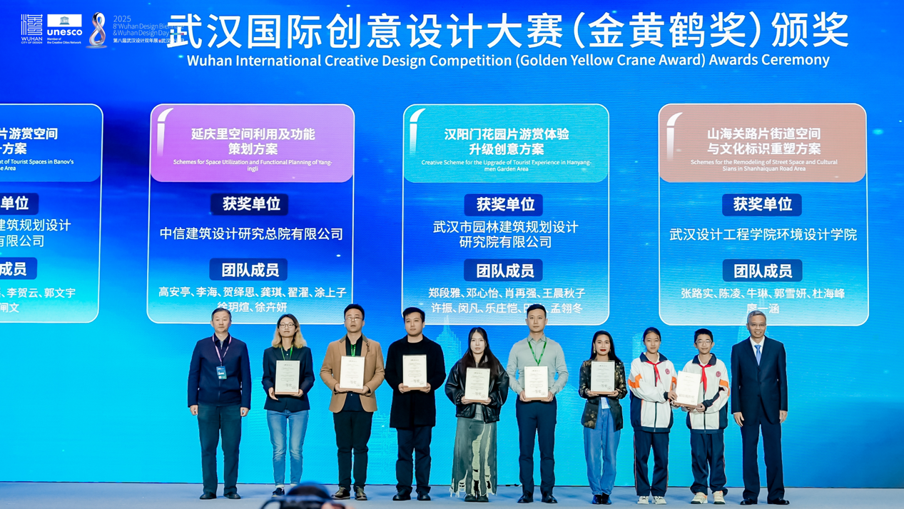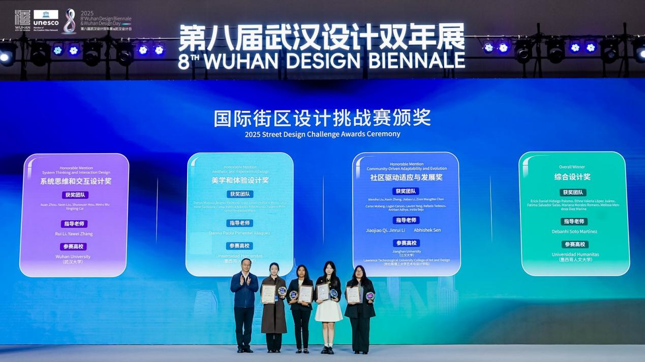 開幕式上,2025年武漢國際創(chuàng)意設(shè)計(jì)大賽(金黃鶴獎(jiǎng))與 2025年國際街區(qū)挑戰(zhàn)賽頒獎(jiǎng)儀式同步舉行。其中,象征武漢設(shè)計(jì)創(chuàng)新探索的“金黃鶴獎(jiǎng)”,今年特意選取黃鶴樓、山海關(guān)路、漢陽門等市民常去、關(guān)注度高、滿滿煙火氣的城市地標(biāo)作為設(shè)計(jì)對(duì)象,不限專業(yè)和地域,征集更宜人的更新提升方案?,F(xiàn)場(chǎng),武漢瑞拓建筑設(shè)計(jì)咨詢有限公司等6個(gè)專業(yè)組一等獎(jiǎng)和最佳組織獎(jiǎng)武漢市七一華源中學(xué)等獲獎(jiǎng)代表接受頒獎(jiǎng)。國際街區(qū)挑戰(zhàn)賽,則是由聯(lián)合國教科文組織設(shè)計(jì)之都城市聯(lián)合舉辦,全球高校團(tuán)隊(duì)共同參與的國際設(shè)計(jì)賽事。經(jīng)過全球30位權(quán)威專家1個(gè)月的精心細(xì)致評(píng)審,選出了四個(gè)優(yōu)勝方案?,F(xiàn)場(chǎng),為交互設(shè)計(jì)獎(jiǎng)獲獎(jiǎng)團(tuán)隊(duì)武漢大學(xué)、美學(xué)設(shè)計(jì)獎(jiǎng)獲獎(jiǎng)團(tuán)隊(duì)墨西哥人文大學(xué)、社區(qū)發(fā)展獎(jiǎng)獲獎(jiǎng)團(tuán)隊(duì)江漢大學(xué)團(tuán)隊(duì)和美國勞倫斯理工大學(xué)團(tuán)隊(duì),以及綜合設(shè)計(jì)獎(jiǎng)獲獎(jiǎng)團(tuán)隊(duì)墨西哥人文大學(xué)頒獎(jiǎng)。