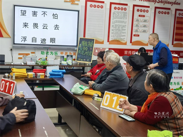 “詩詞消消樂”環(huán)節(jié)將活動推向高潮。主持人把經(jīng)典詩句拆分成零散詞組,老教授們需搶鈴競速、完整誦讀。一時(shí)間,搶鈴聲此起彼伏,大家你爭我搶,展現(xiàn)出別樣的活力與熱情。