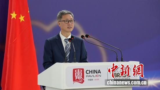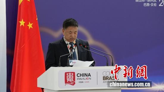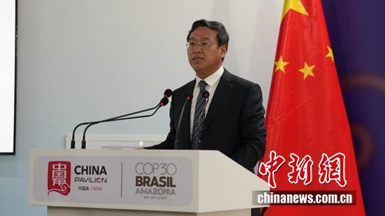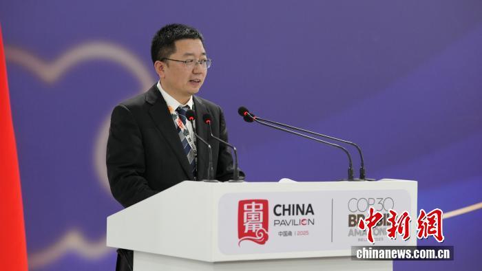 圖為COP30中國(guó)代表團(tuán)團(tuán)長(zhǎng) 生態(tài)環(huán)境部副部長(zhǎng)李高主持邊會(huì)致辭環(huán)節(jié)。中國(guó)新聞網(wǎng)記者 林勐男 攝