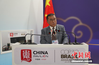 圖為中國(guó)氣候變化事務(wù)特使劉振民發(fā)表致辭。中國(guó)新聞網(wǎng)記者 林勐男 攝