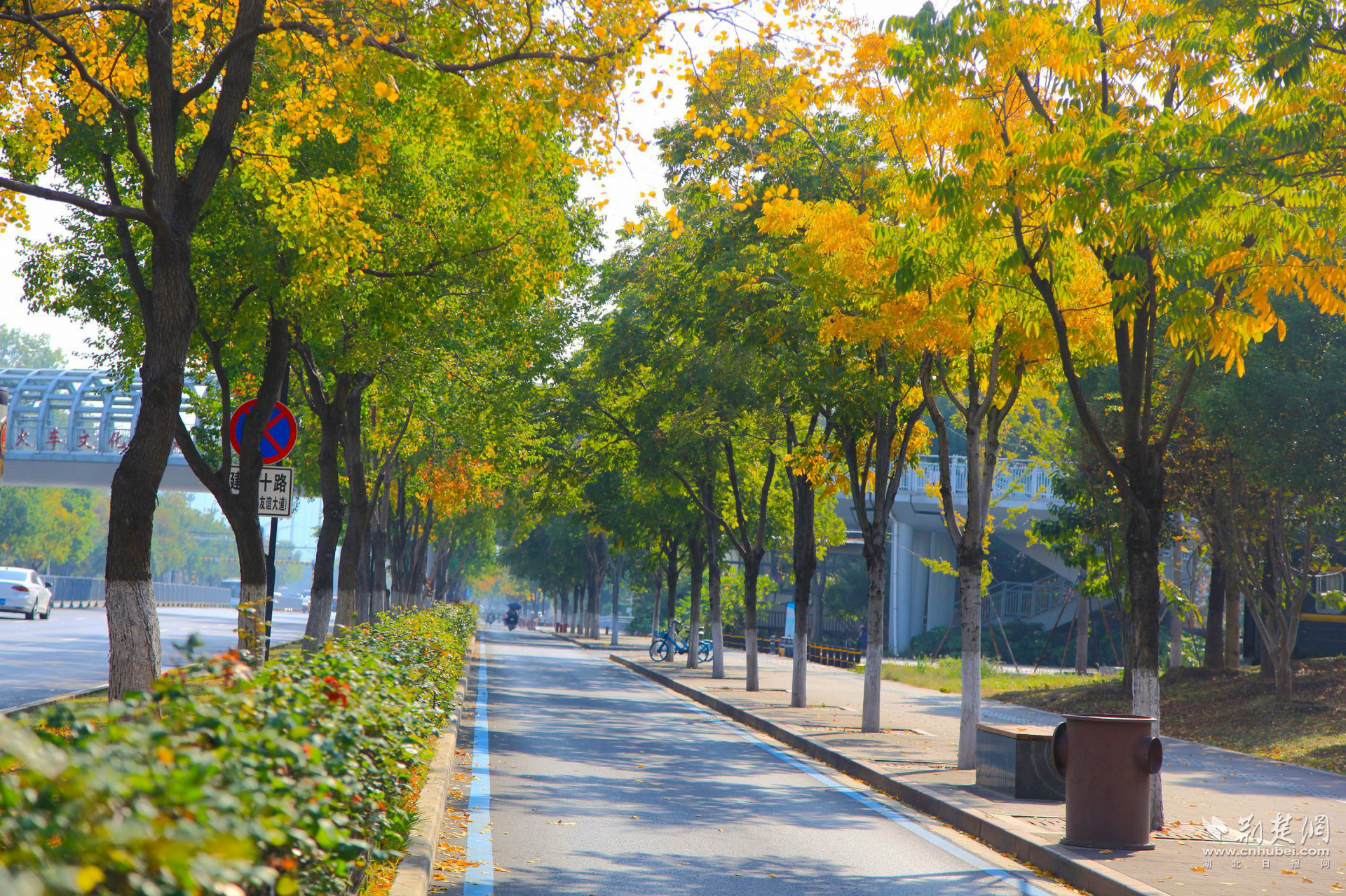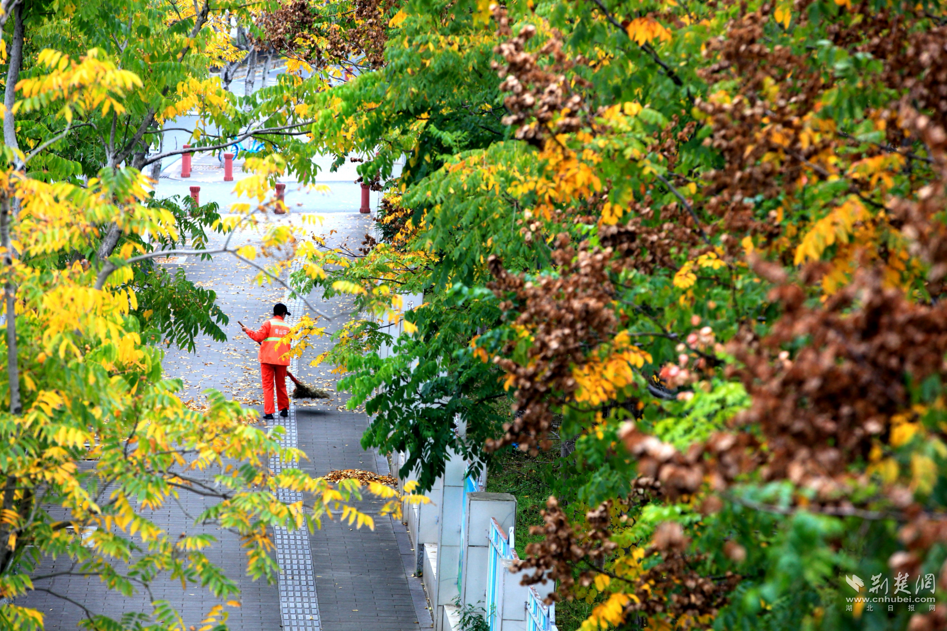 荊楚網(wǎng)(湖北日報網(wǎng))訊(記者 何婧 通訊員 杜媛媛 呂學(xué)勇 張忱)近日,武漢市青山區(qū)建設(shè)十路迎來了一年中最絢爛的時刻:無患子金黃璀璨,烏桕深紅如焰,斑斕色彩與沿途公園、綠道共同勾勒動人的城市生態(tài)畫卷,吸引市民駐足打卡。