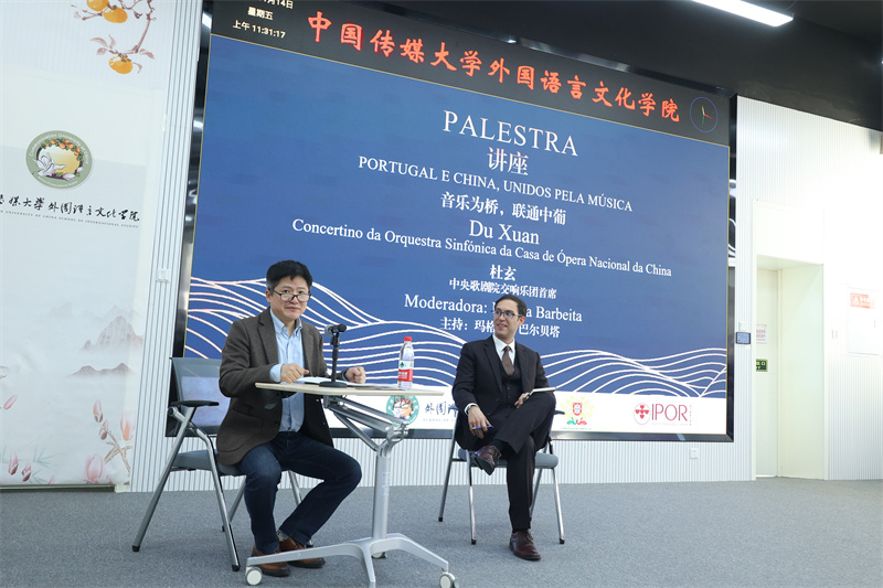 中央歌劇院交響樂團(tuán)首席杜玄以“音樂為橋,聯(lián)通中葡”為題,結(jié)合自身在葡萄牙學(xué)習(xí)與工作的經(jīng)歷,闡述了音樂與語言在跨文化交流中的橋梁作用,激勵(lì)青年學(xué)子以開放心態(tài)探索多元文化。