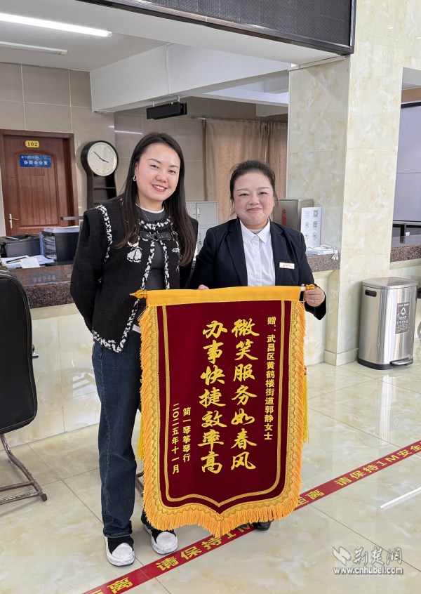 荊楚網(wǎng)(湖北日報網(wǎng))訊(通訊員劉麗)近日,武昌區(qū)黃鶴樓街道便民服務中心工商窗口上演了暖心一幕。一位商戶代表將一面書寫著“微笑服務如春風,辦事快捷效率高”的錦旗,鄭重送到工作人員郭靜手中,對她即使在生病住院期間仍堅持線上為商戶排憂解難的敬業(yè)精神表達誠摯謝意。
