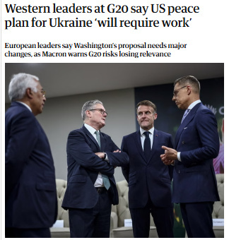 報(bào)道還稱,歐洲多國(guó)領(lǐng)導(dǎo)人在峰會(huì)間隙舉行會(huì)議,討論他們對(duì)該計(jì)劃的回應(yīng)。他們?cè)诼?lián)合聲明中提到,該草案“包含了對(duì)實(shí)現(xiàn)公正持久和平至關(guān)重要的要素”,但目前其“只是一個(gè)基礎(chǔ),尚待進(jìn)一步完善”。