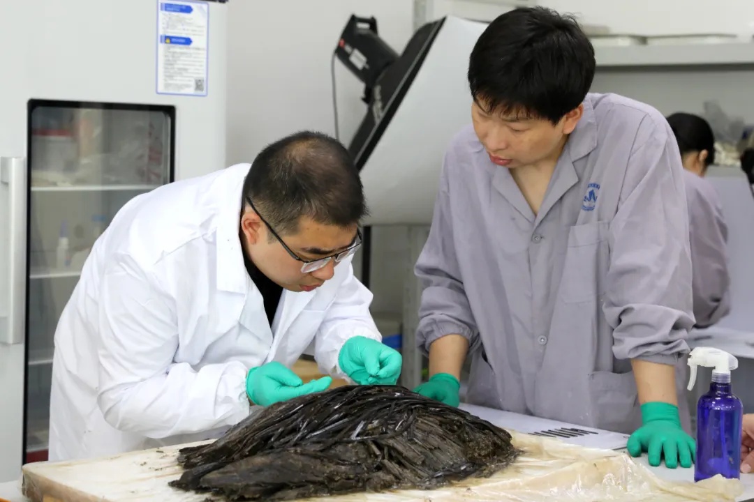 荊州文物保護(hù)中心工作人員揭取整理秦家咀楚簡(jiǎn)