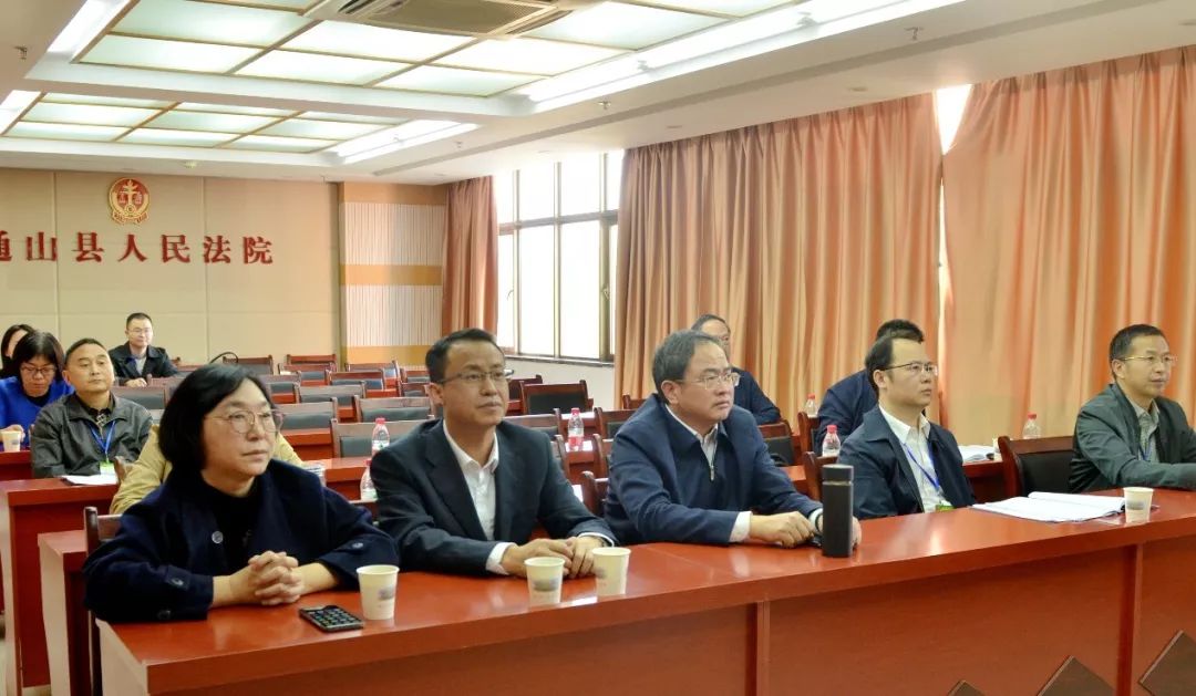 省市縣相關領導在通山縣人民法院安保指揮中心觀摩庭審直播