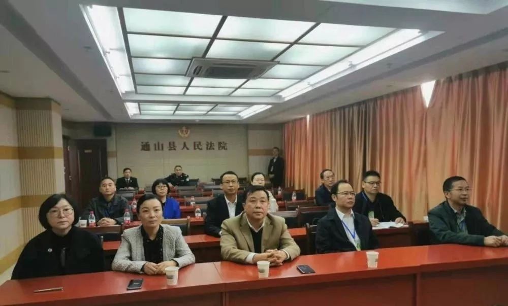 通山縣委書記石玉華,湖北省司法廳律師工作處處長嚴安,縣委副書記、政法委書記胡江玲,通山縣人民法院黨組書記、院長鐘華崗,通山縣人民檢察院黨組書記、檢察長陳利及省市縣相關領導在通山縣人民法院安保指揮中心觀摩庭審直播。部分黨代表、人大代表、政協(xié)委員、人民監(jiān)督員、群眾代表等在現(xiàn)場觀摩庭審。