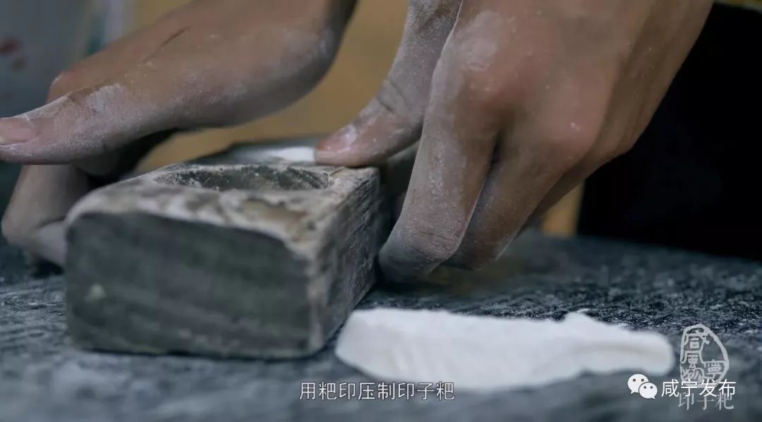 印子粑是咸寧鄉(xiāng)村廣為流傳的民俗食品,一般在春節(jié)和孩子一歲生日時制作。粑印用木制,每個粑印有1-3個空模,形狀一般只有小茶杯口大。粑印里刻有反向的如魚以及花、草等各種動植物圖案,制作出來的粑邊緣有一圈花紋,形象生動,栩栩如生。堆成的粑山,晶瑩透亮,造型美觀,堪稱優(yōu)秀的民間藝術(shù)品。