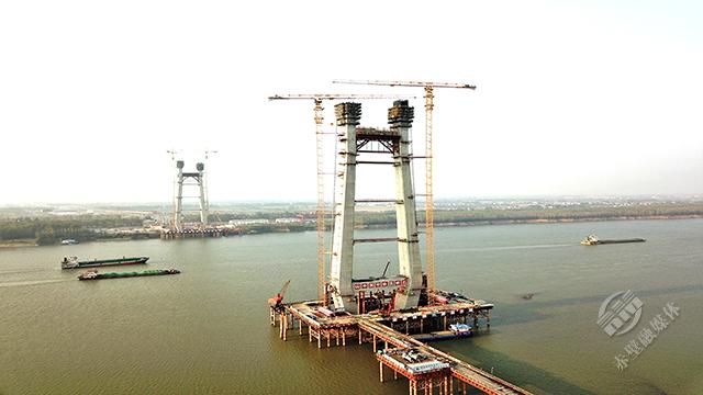▲赤壁長江大橋建設(shè)現(xiàn)狀