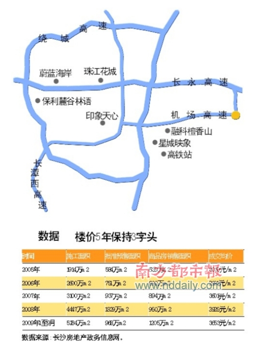 在長沙市巡城的短短幾天里,記者所到之處都可以發(fā)現(xiàn)不少樓盤在建或者在售。據(jù)當(dāng)?shù)孛襟w資深人士介紹,目前長沙在售的樓盤就已經(jīng)超過200個,還有不少正在動工建設(shè)中,這些樓盤動不動就是數(shù)百畝,甚至上千畝。面積遠(yuǎn)大于長沙的廣州市,目前活躍樓盤只在100個左右,并且不少還是袖珍樓盤。另外,長沙城區(qū)人口才不到300萬人,廣州已經(jīng)超過1000萬。雖然長沙人口不到廣州的三分之一,但是長沙的房地產(chǎn)銷售面積近幾年都超過廣州,今年1至10月份長沙銷售面積已經(jīng)超過1000萬平方米。